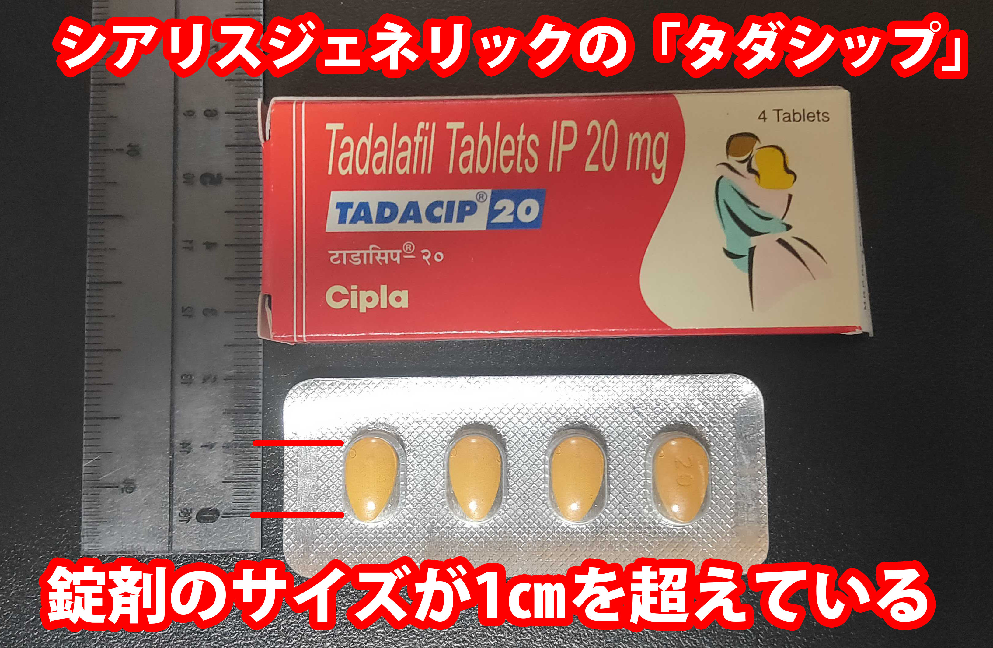 シアリスジェネリックの中でも人気がある「タダシップ」も、錠剤1粒のサイズは1㎝を超えています。