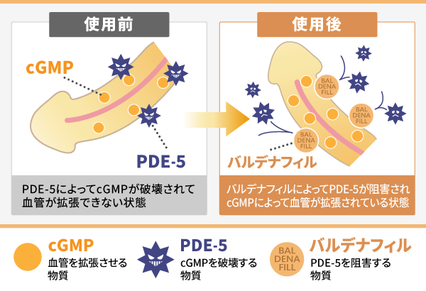バルデナフィルはPDE-5の働きを阻害してEDを治療する治療薬のため、「PDE-5阻害薬」と呼ばれています。