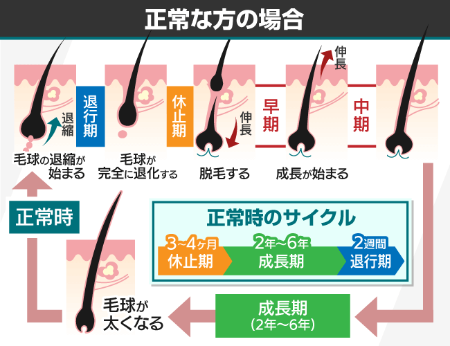一般的に髪の毛は「1日50本~100本近く抜ける」のが正常範囲内です。