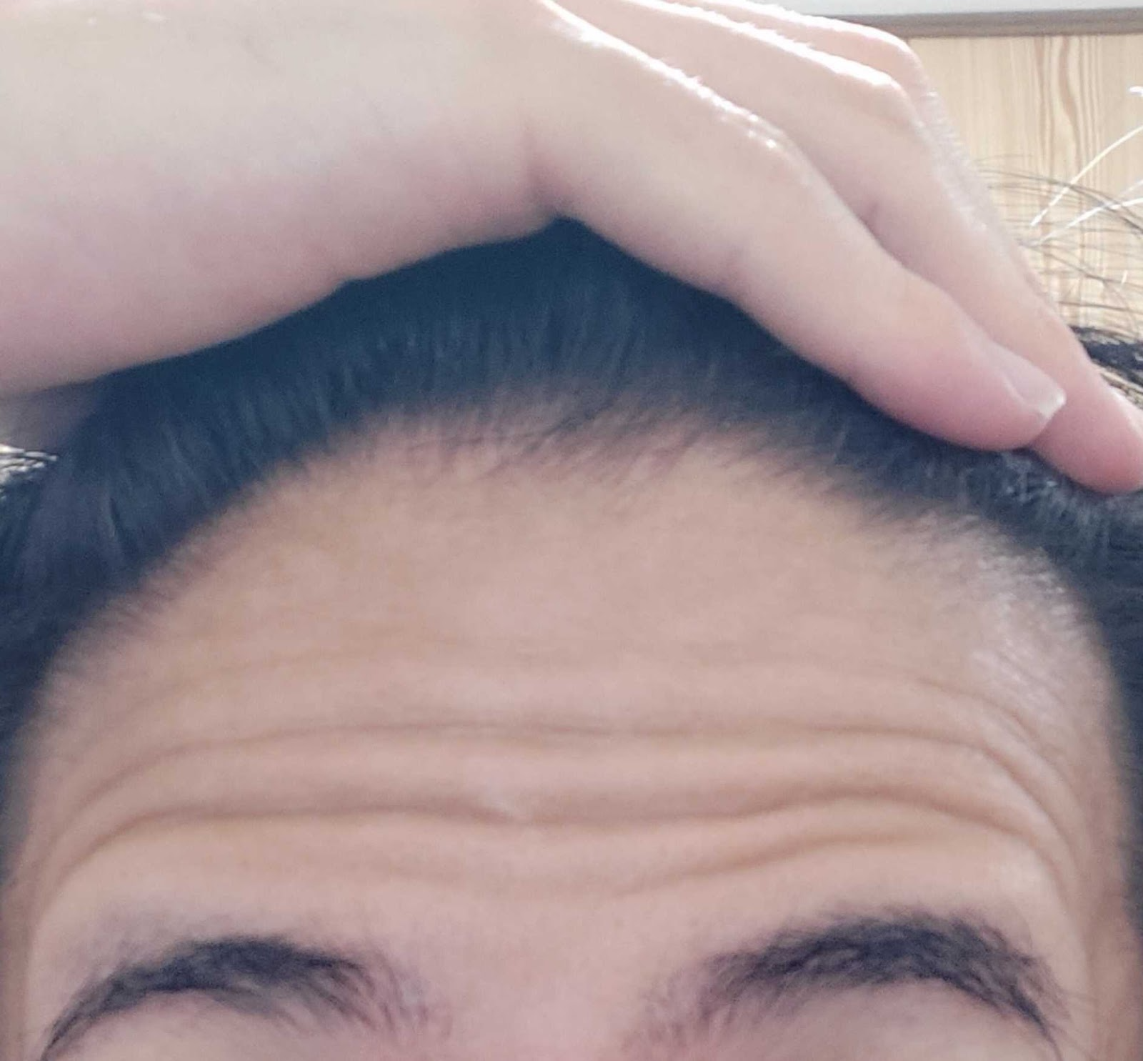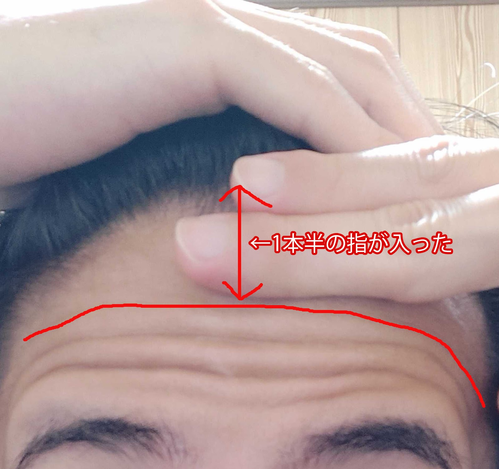 M字ハゲのセルフチェックで最も簡単なのが「おでこのシワ+生え際の間に指が2本以上入るか?」という確認方法。