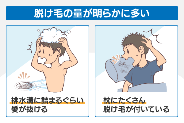 しかし、以下のような場合は薄毛が進行して、異常な抜け毛が発生している可能性があるため注意しましょう。
