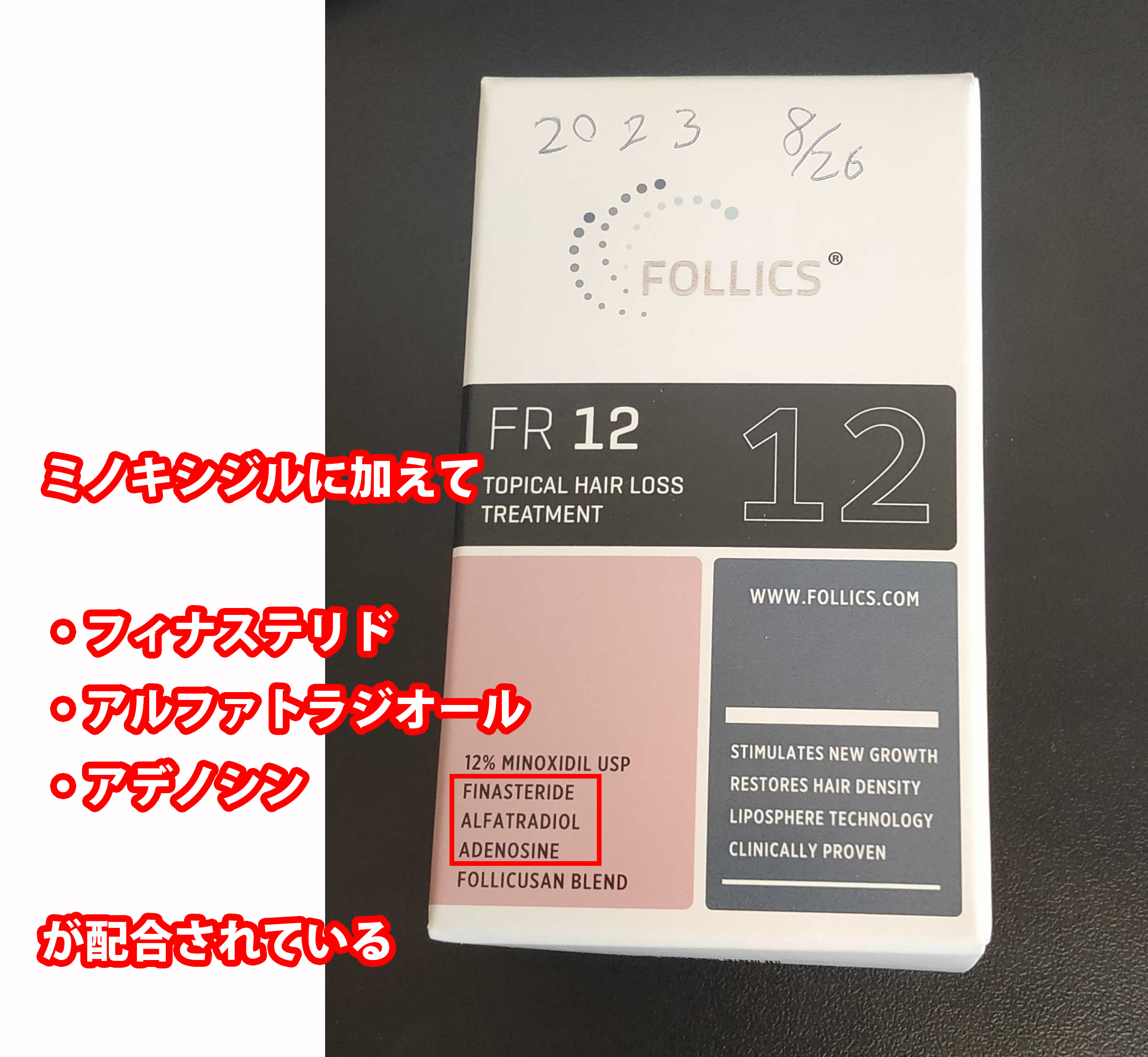| ミノキシジル以外の配合成分 | ・フィナステリド ・アデノシン ・アルファトラジオール ・Follicusan | ・アデノシン ・プロシアニジンB2 ・プロキャピル | |||