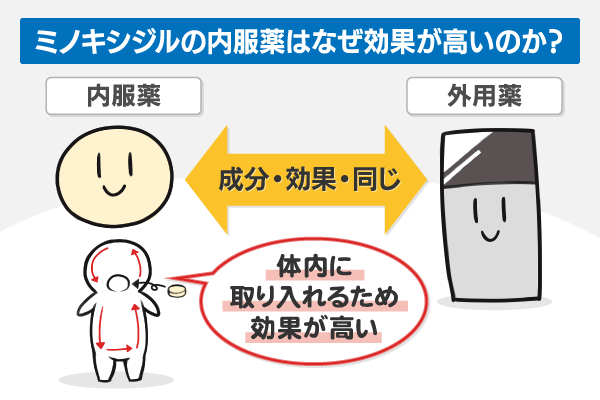 外用薬と内服薬は基本的に同じ成分が含まれていますが、外用薬の場合は期待できる効果が限定的と言われています。