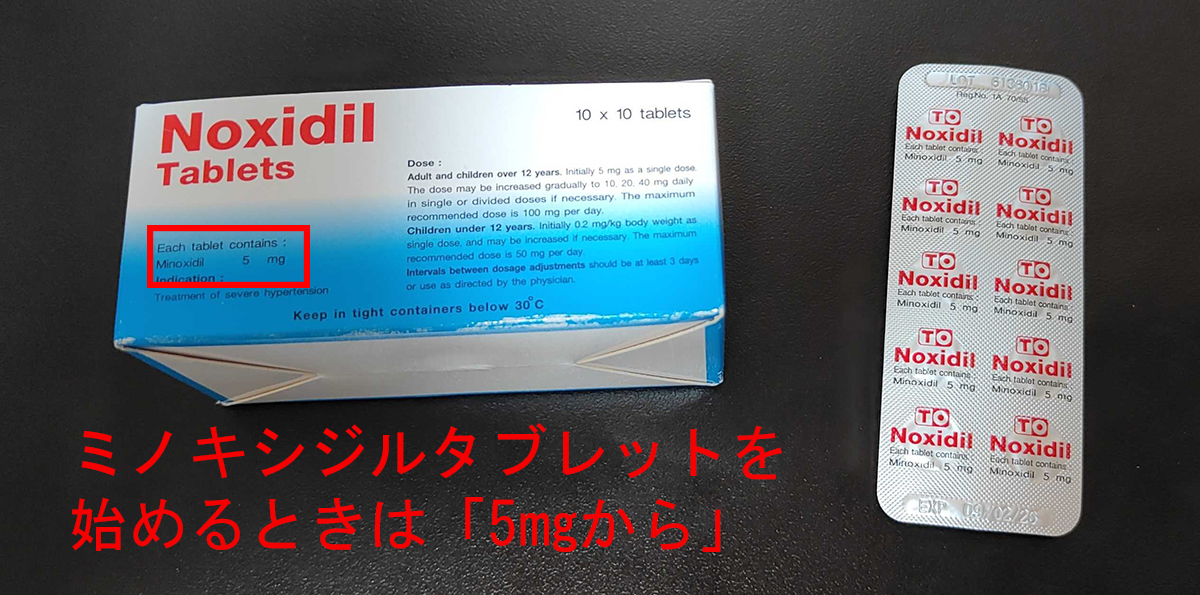 また、内服薬のミノキシジルは「ミノキシジルタブレット」と呼ばれており、成分量が異なる5mgと10mgが存在します。