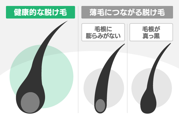さらに頻度でいえば、約3か月のヘアサイクルを超えて通常の2倍以上の抜け毛が1か月に何度もある場合は異常です。