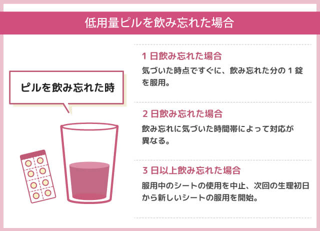 低用量ピルを飲み忘れた時の対処方法|生理が来た場合や避妊効果について解説