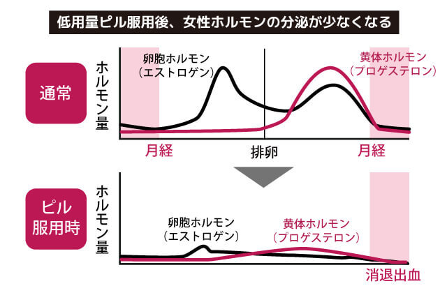 しかし低用量ピルには、有効成分としてこれら2つの女性ホルモンが配合されています。