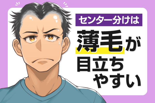 また、センター分けは頭部の中心から「分け目をしっかり作る髪型」なので、頭頂部やつむじ周りの薄毛が目立ってしまうリスクもあります。